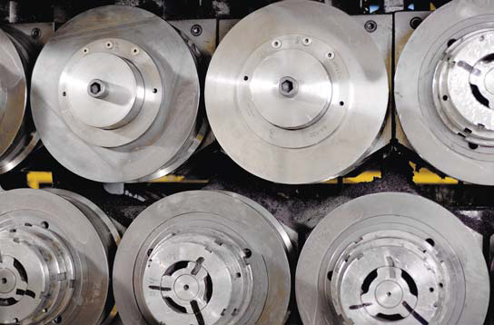 在这条钢材加工线上有四个齐边和碎边剪,它们彼此动作必须完全同步。而每个齐边碎边剪都是将许多刀片安装在一个刀盘上,当钢板通过它时,就将其前、后边缘修剪整齐。刀盘是靠 BLHC-H液压胀套来定位和锁紧的,液压胀套在加压过程中,刀片始终处在原来的位置上,彼此无论在轴的长度方向还是直径方面都是同步运动的。除此之外,BLHC-H液压胀套还传递着很大的径向动载荷。